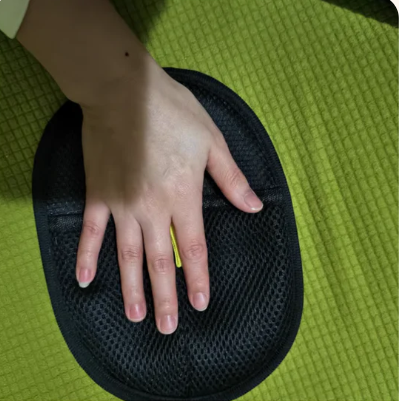 Na gebruik spoel je de handschoen gewoon af onder de kraan. Geen plakkerige resten, geen moeite – hij is meteen weer klaar voor de volgende borstelbeurt.
